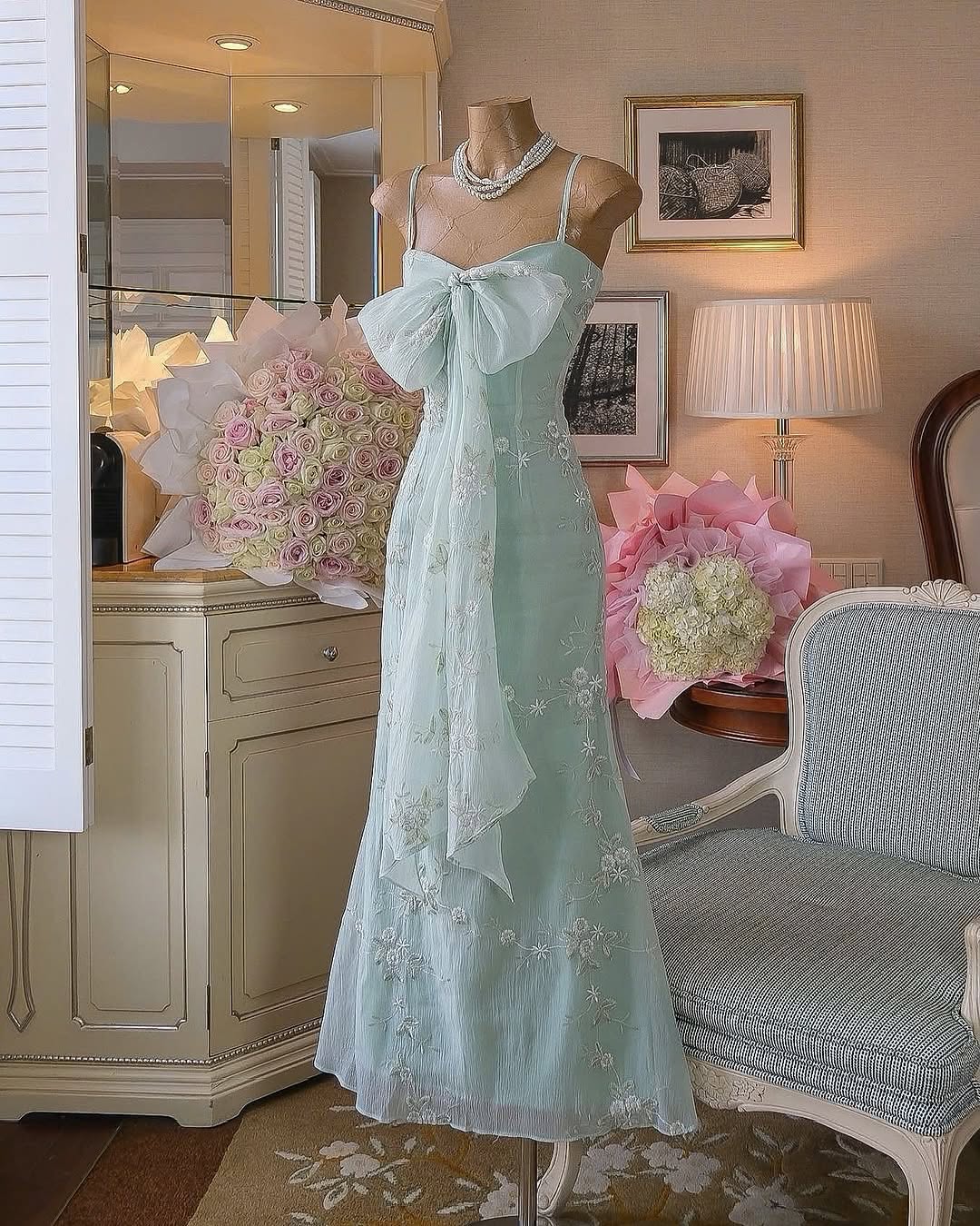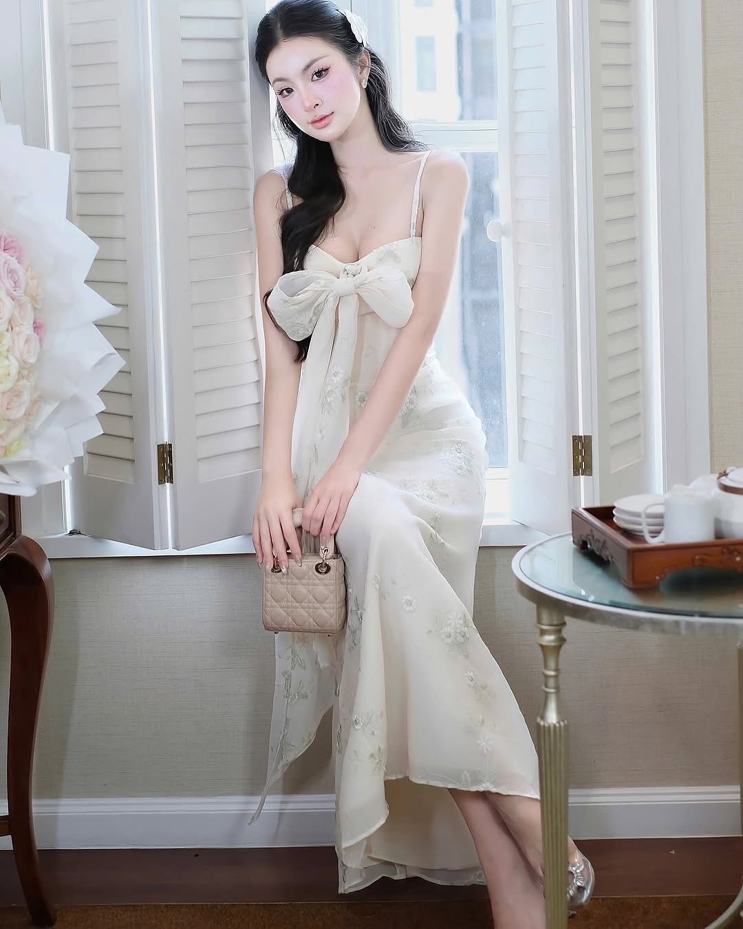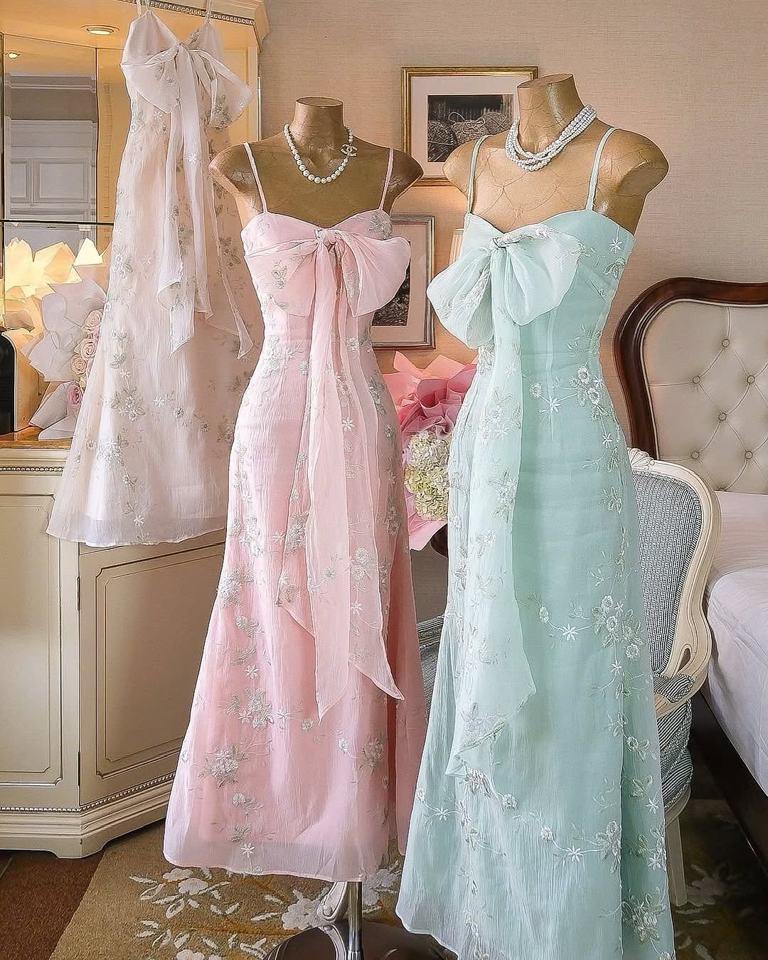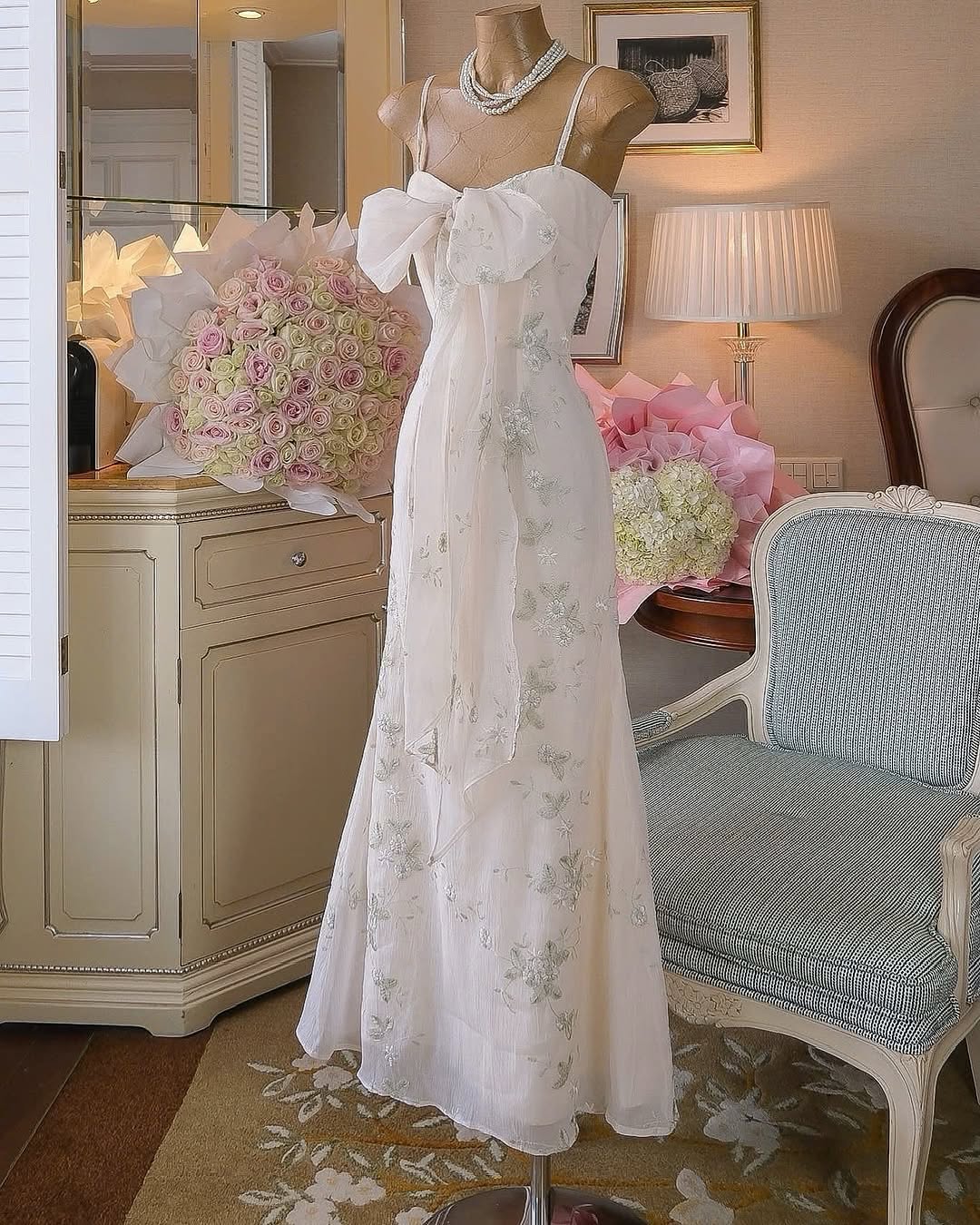 A dream in fabric, the Aetheria Dress embodies elegance with its delicate floral embroidery, flowing silhouette, and enchanting bow detail. Perfect for sunlit afternoons and moonlit evenings, this dress moves as gracefully as you do.