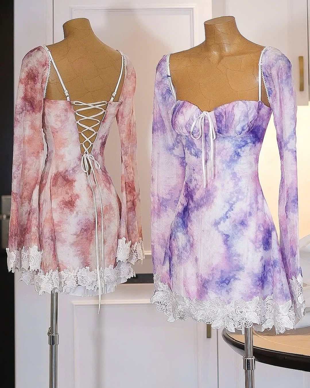 • Watercolor tie-dye fabric with warm, dreamy hues