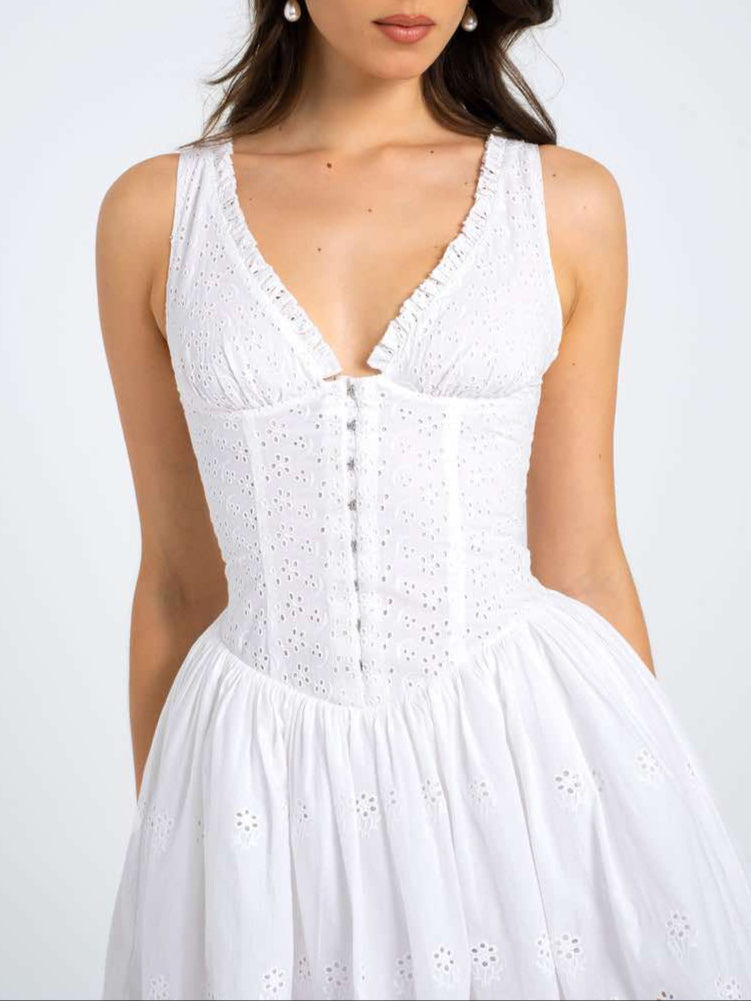 Meet the Bridgette Dress your next go-to dress for sunny days! This sleeveless eyelet design offers a fitted bodice with a flowy skirt to keep you chic and comfy.