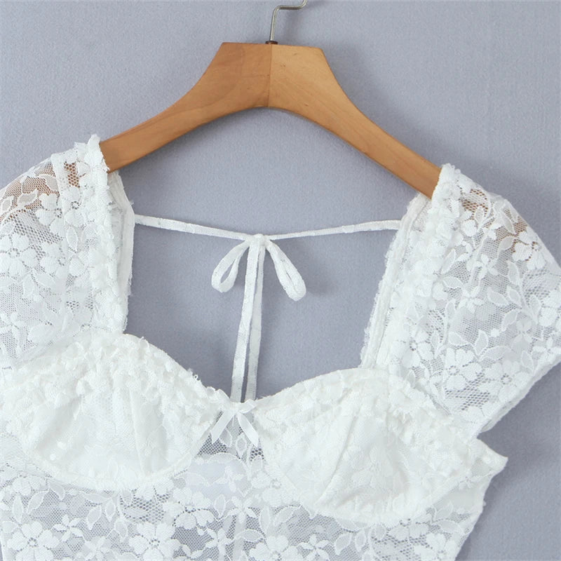 Lace is back—but softer, sleeker, and easier to wear than ever. With a gently sculpted bodice and back tie detail, the Catalina Top turns even the most casual outfit into something special.