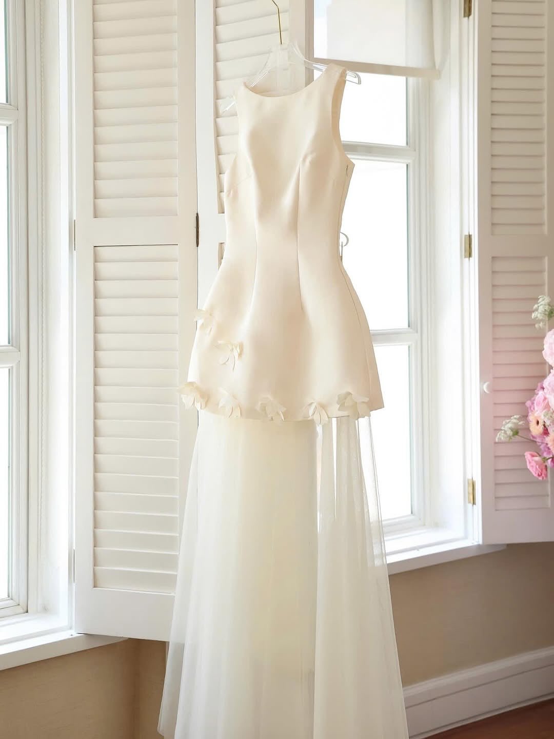 • Handcrafted floral appliqué neckline adorned with delicate pearls
