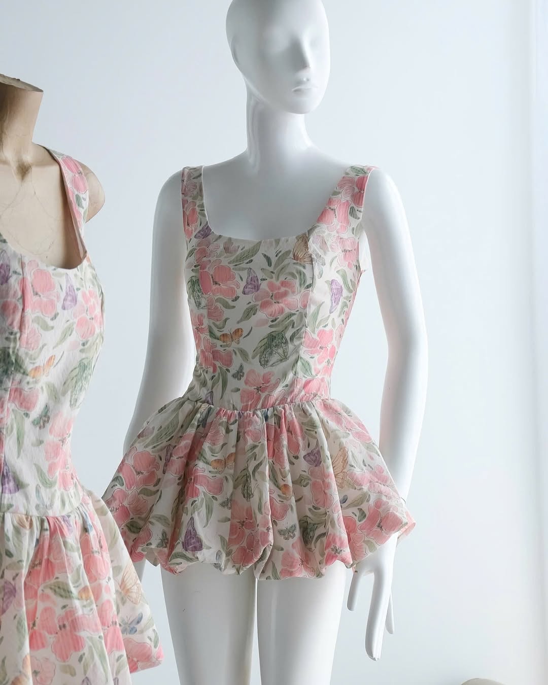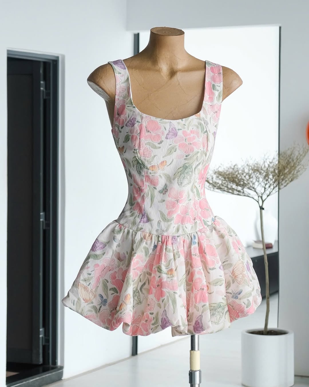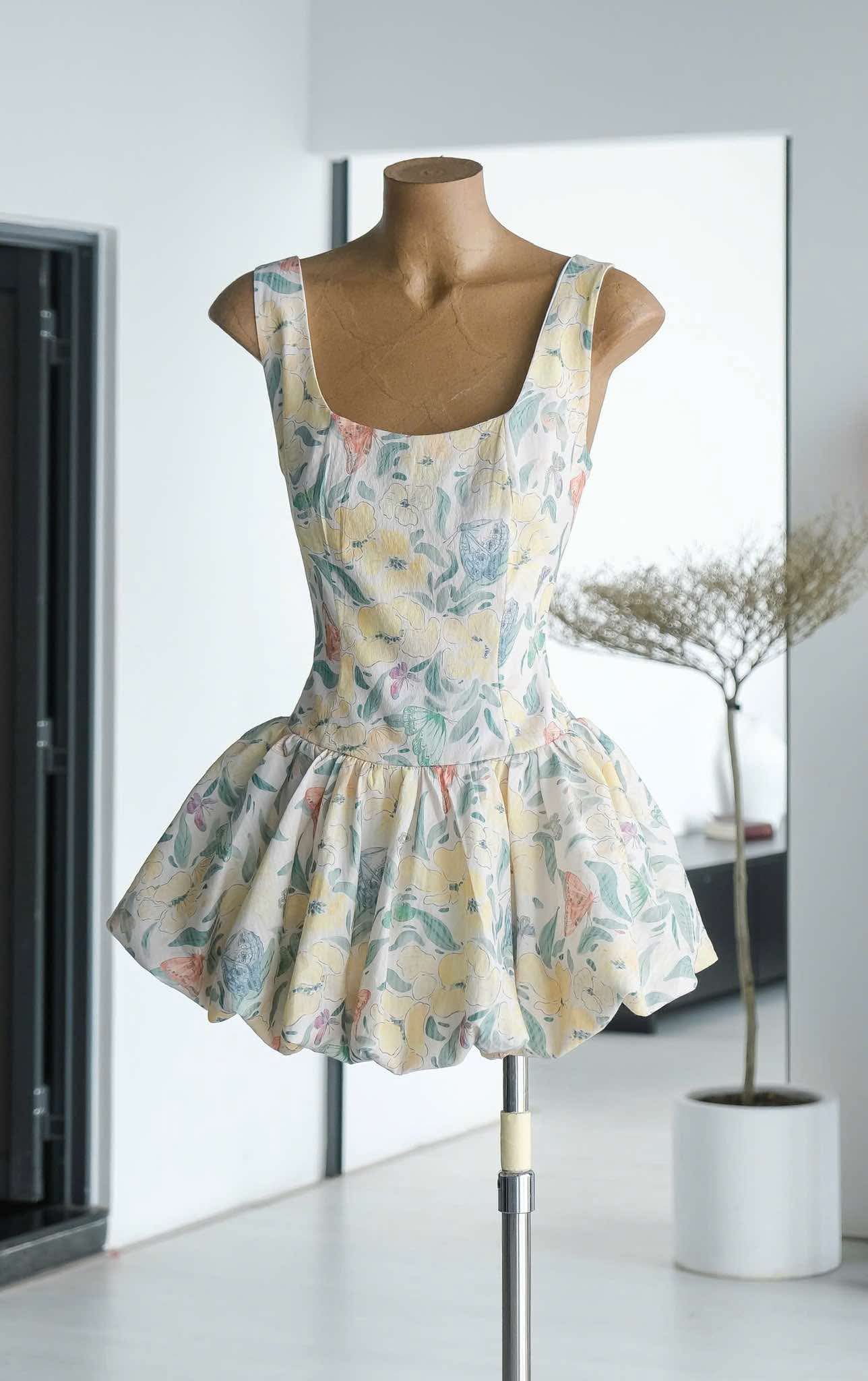 Meet the Delphine Dress — a romantic daydream in dress form. With its painterly floral print and feminine silhouette, it's your go-to for brunches, strolls, and sweet escapes.