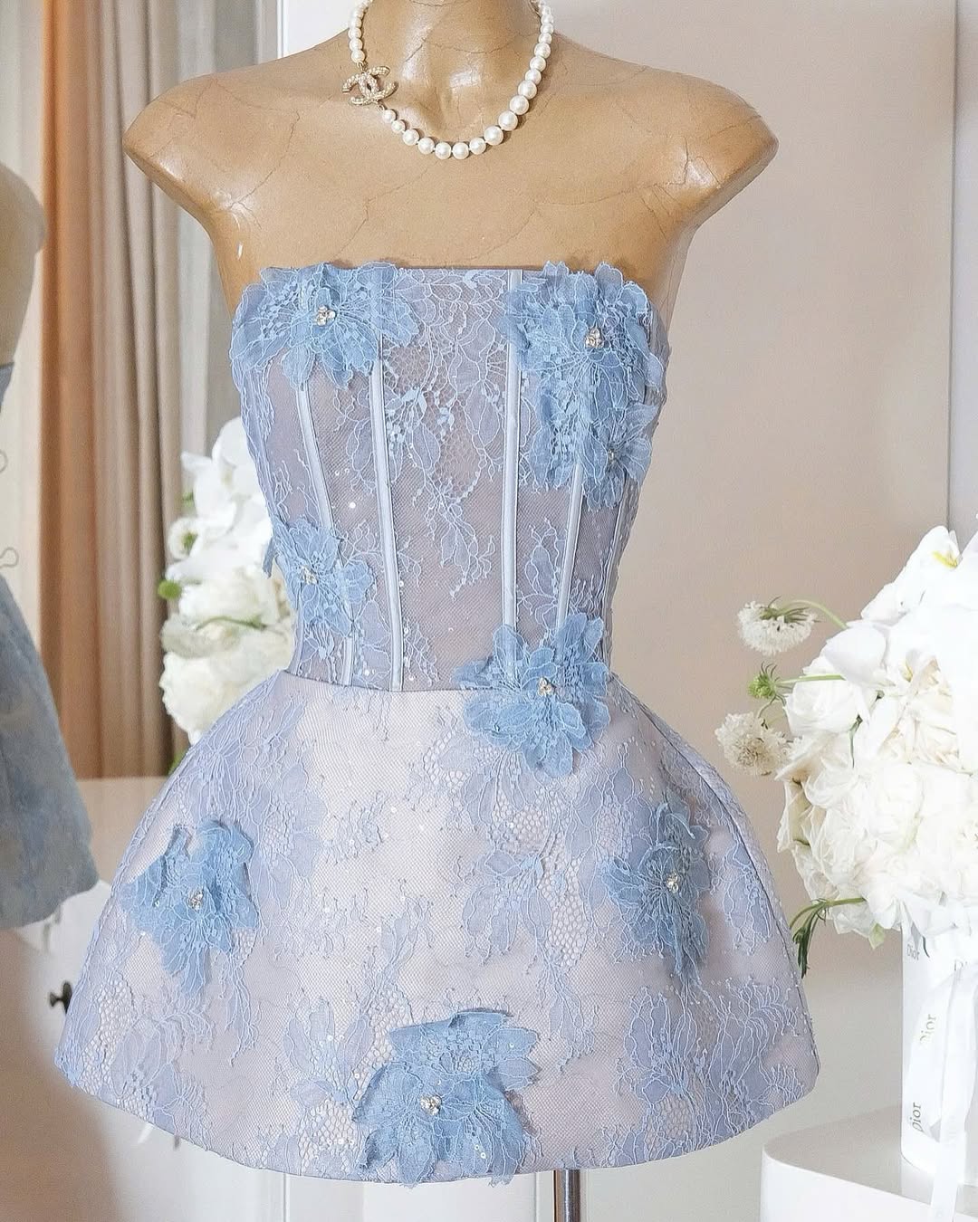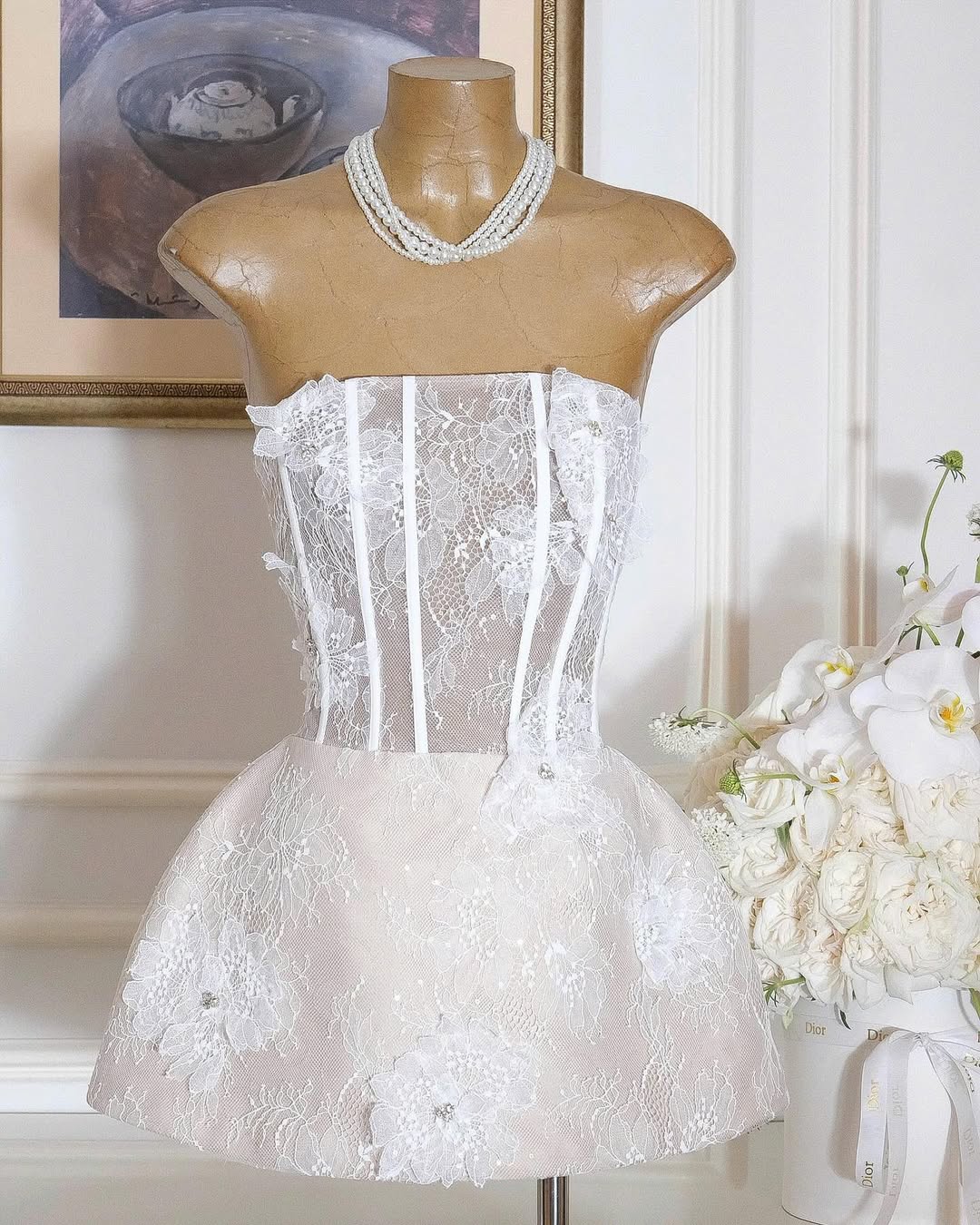 The Demi Dress — a dreamy silhouette for the spotlight. This strapless mini blends elegance with just enough edge — perfect for galas, date nights, or twirling at midnight.