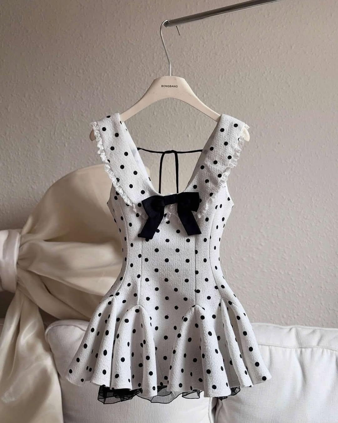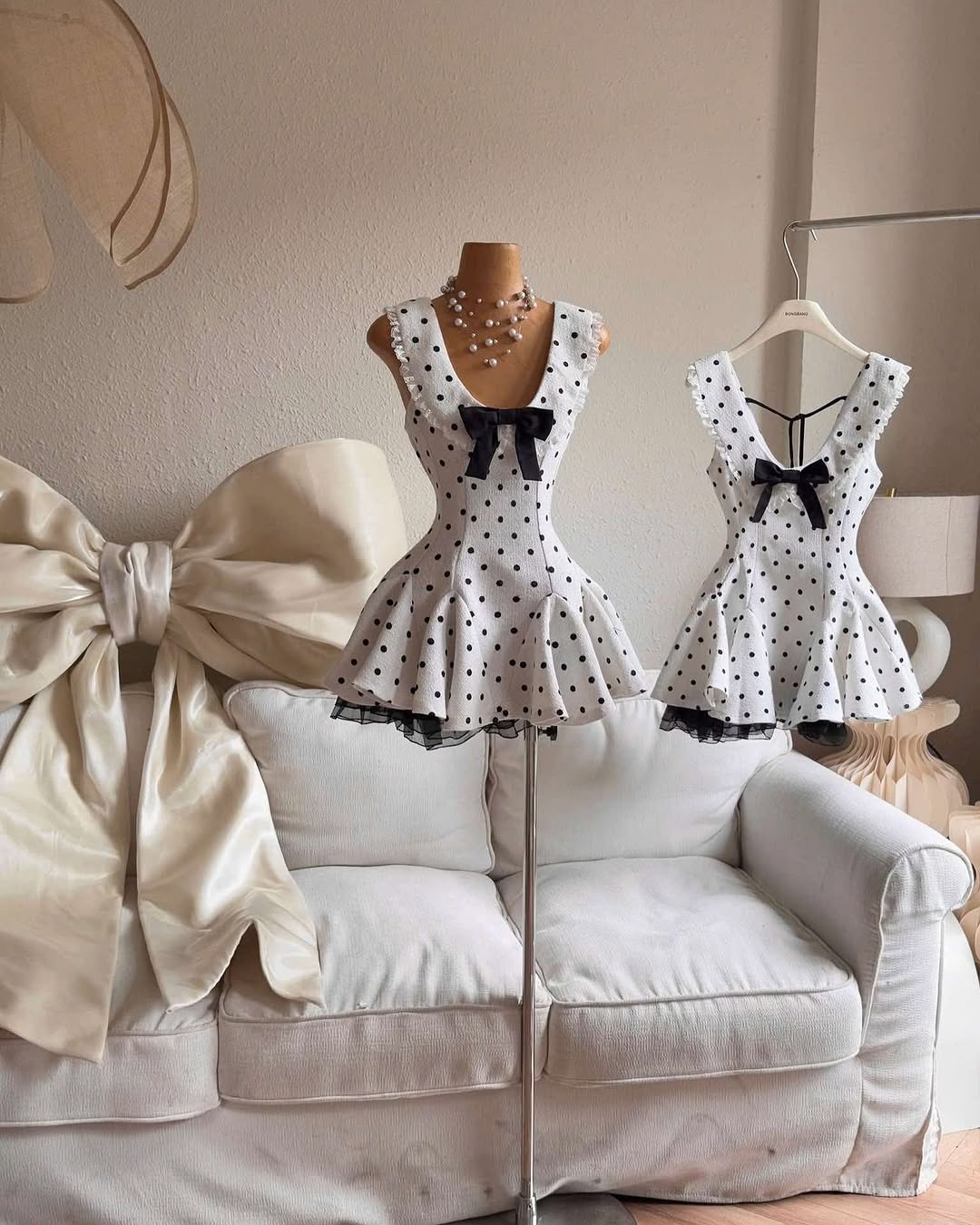 Designed with classic polka dots and delicate lace details, the Diana Dress is a graceful ensemble that adds a vintage touch to any wardrobe. A timeless dress made for high-tea dates, romantic evenings, or sophisticated celebrations.