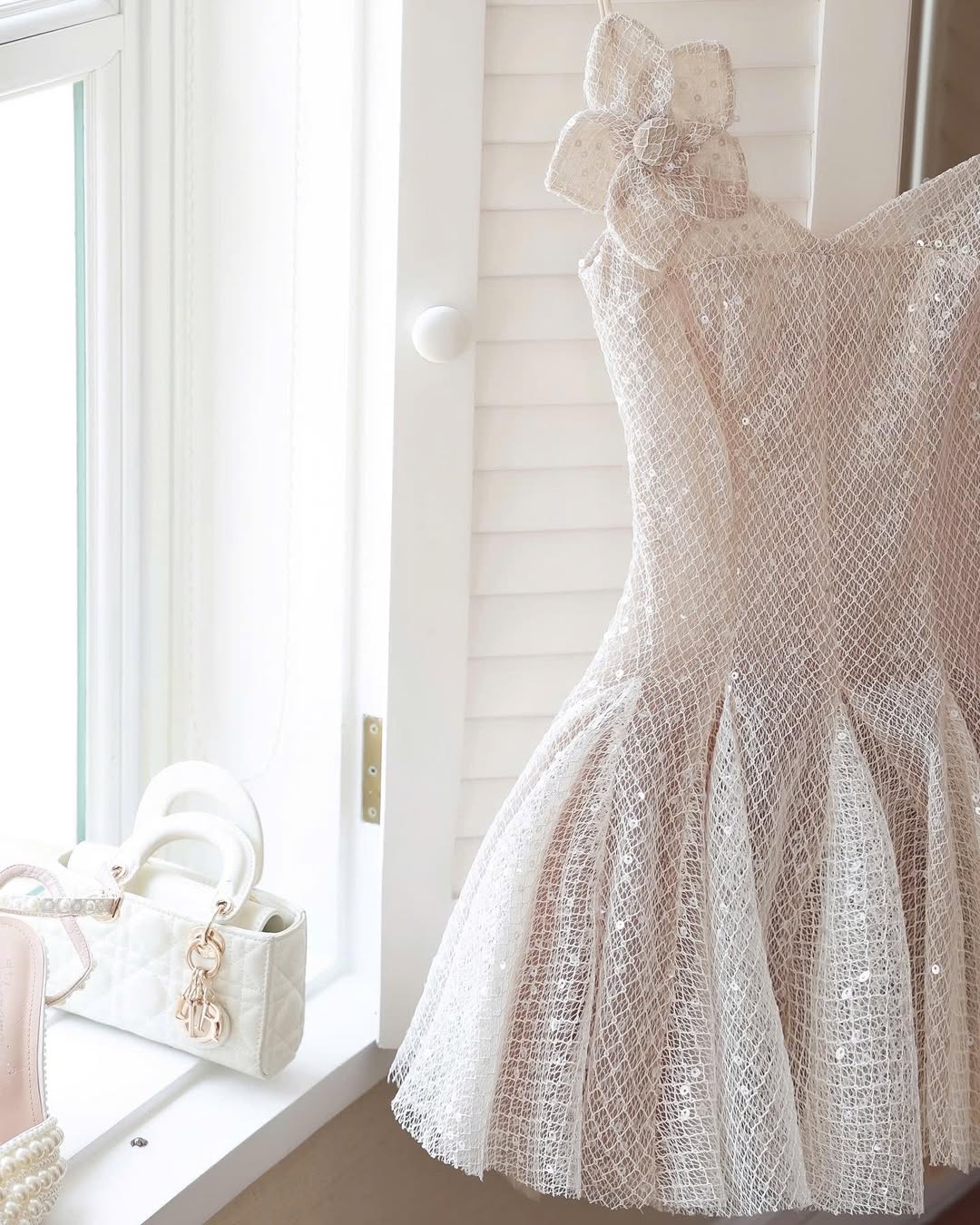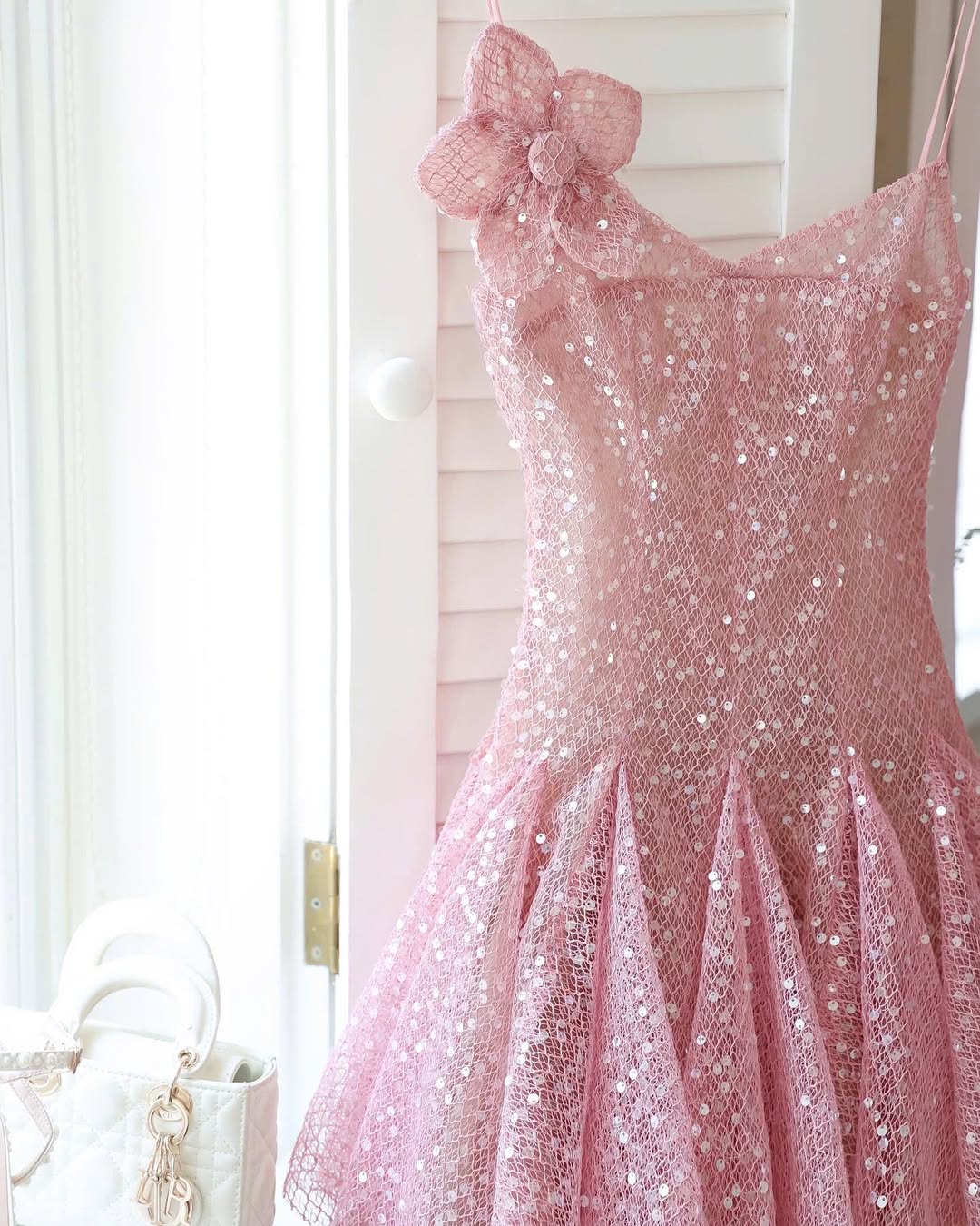 • Handcrafted floral appliqué neckline adorned with delicate pearls