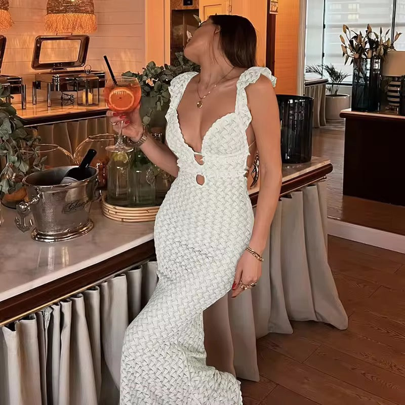 Introducing our Esmeralda Dress. A dreamy, lightweight dress perfect for warm-weather occasions. Its breathable chiffon fabric and flowy design make it ideal for effortless elegance.