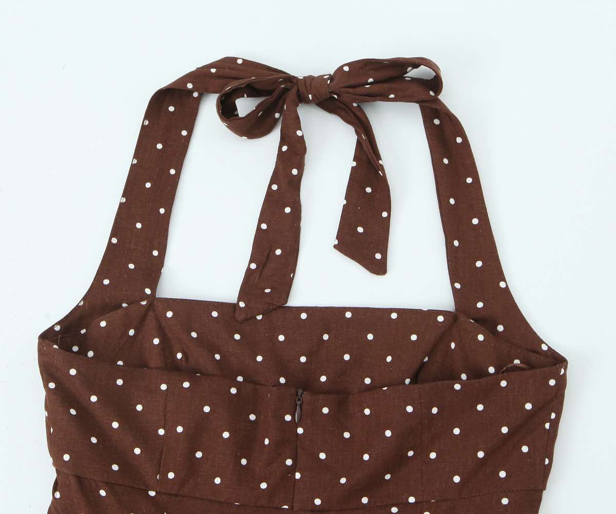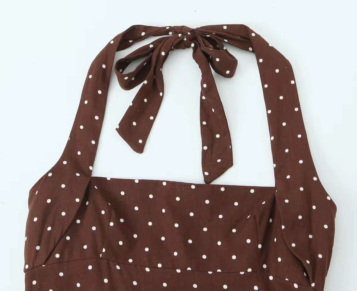 The Julia Dress is your new go-to! Midi length, A-line fit, and halter neckline come together for a flattering look. The woven fabric and dot pattern complete this chic look.