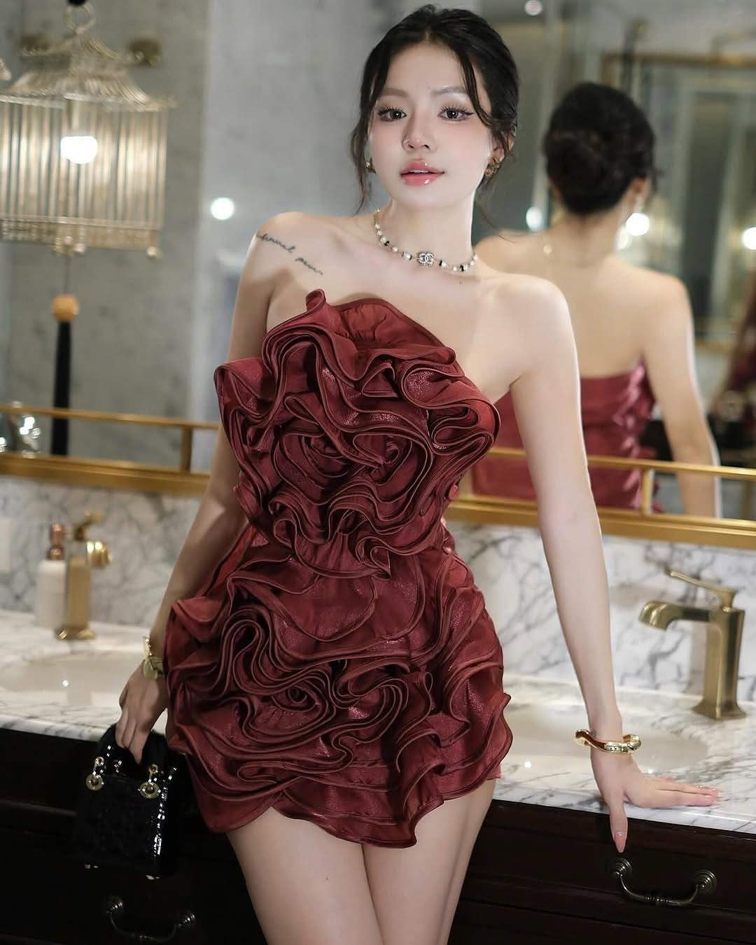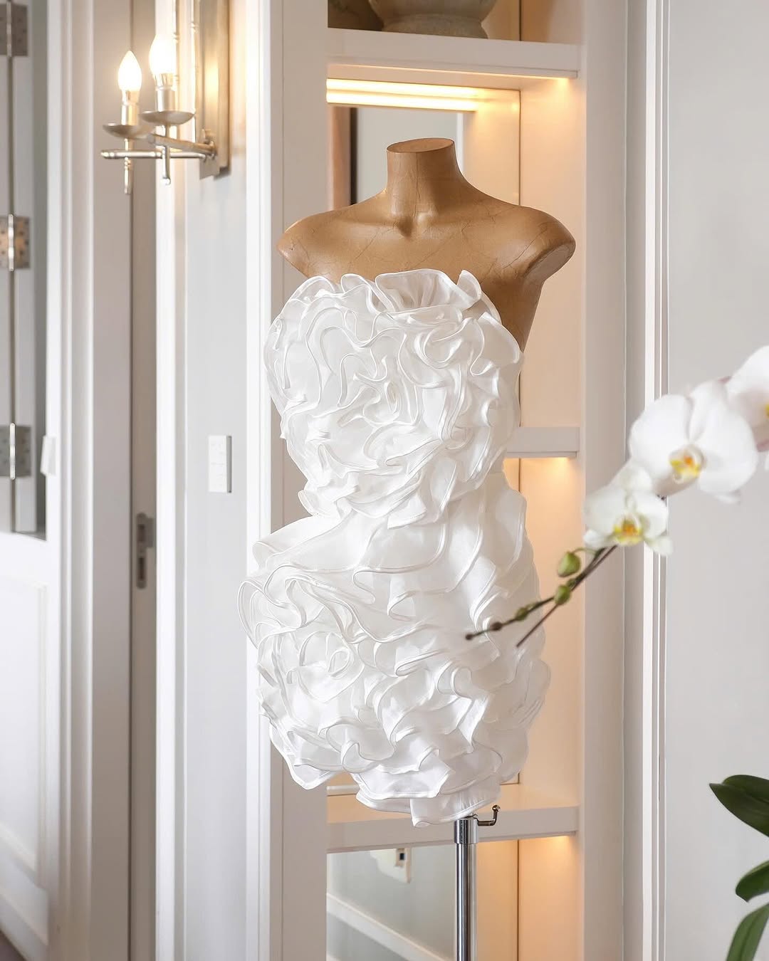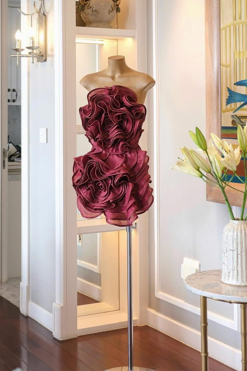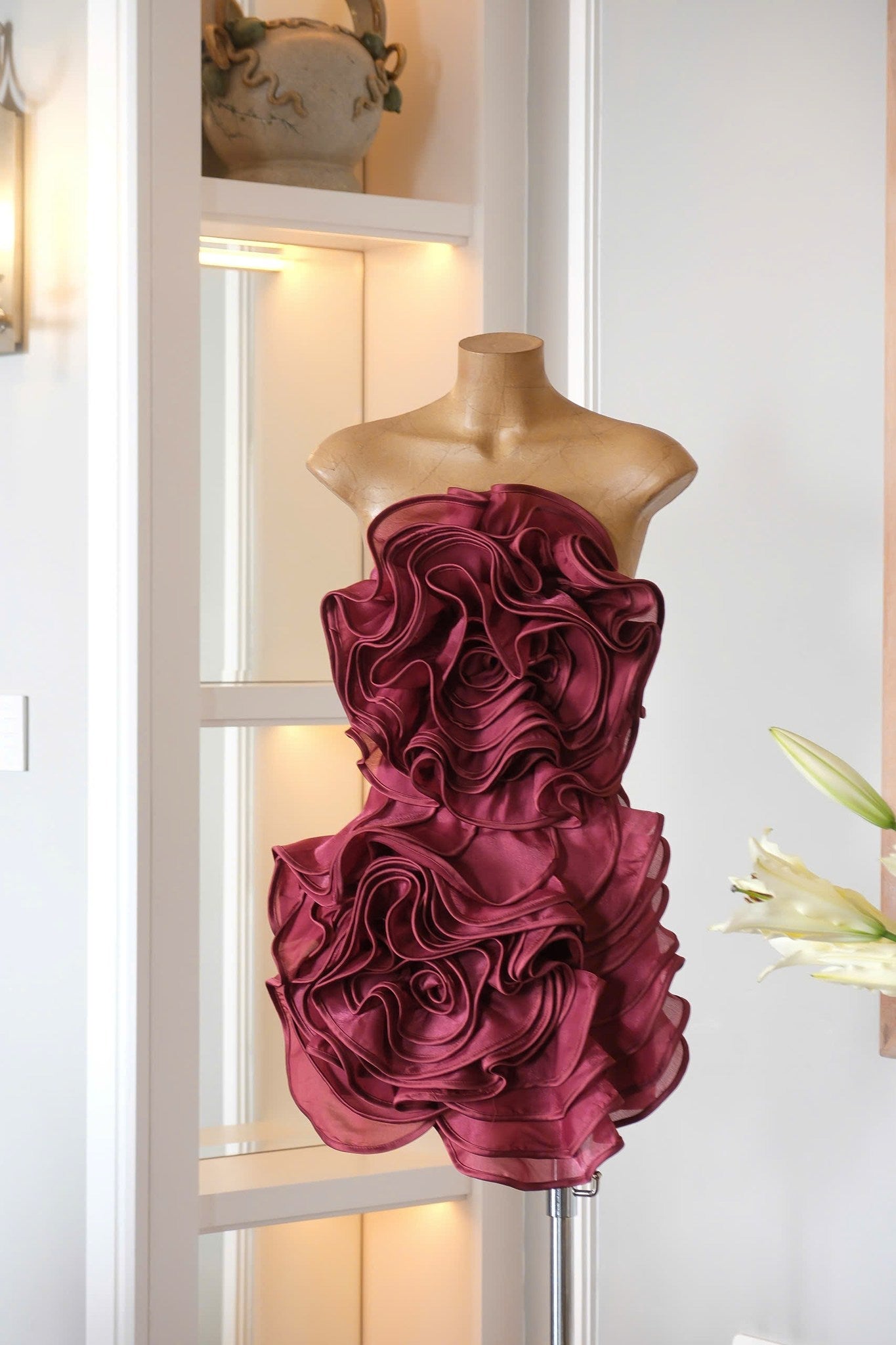 A dress designed for those who dare to stand out. The Kourtney Dress takes volume and movement to the next level, with dramatic waves of ruffled fabric that create an unforgettable silhouette.