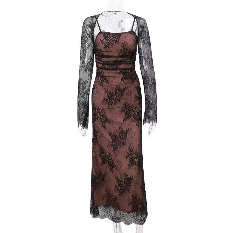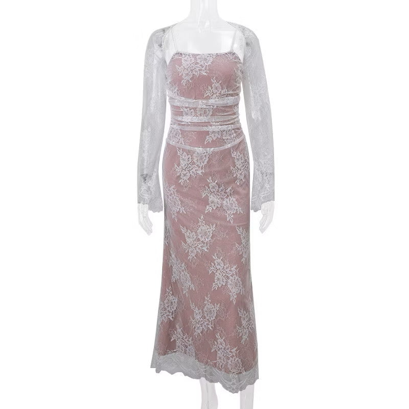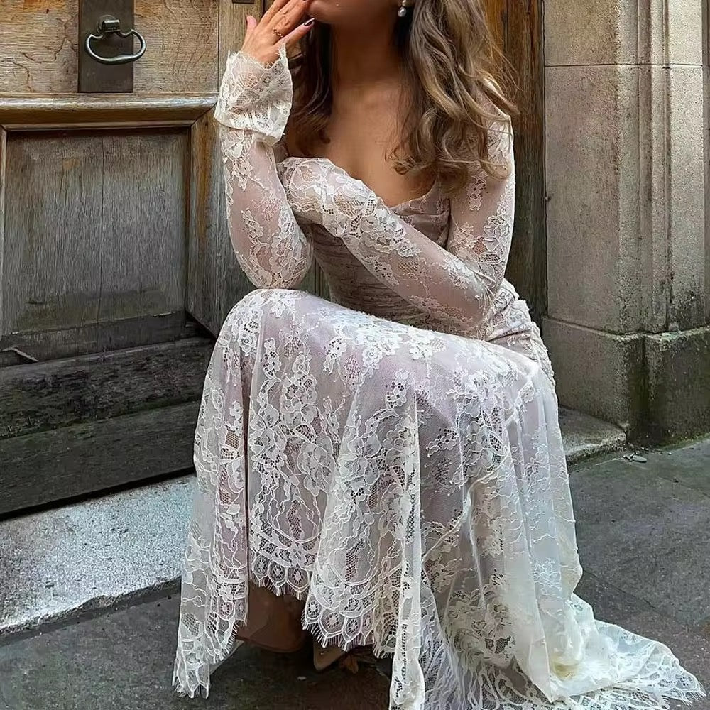 This Mia Dress is made for moonlit dinners, bridal showers, and every soft moment in between. With delicate lace and sheer sleeves, it's effortlessly ethereal.