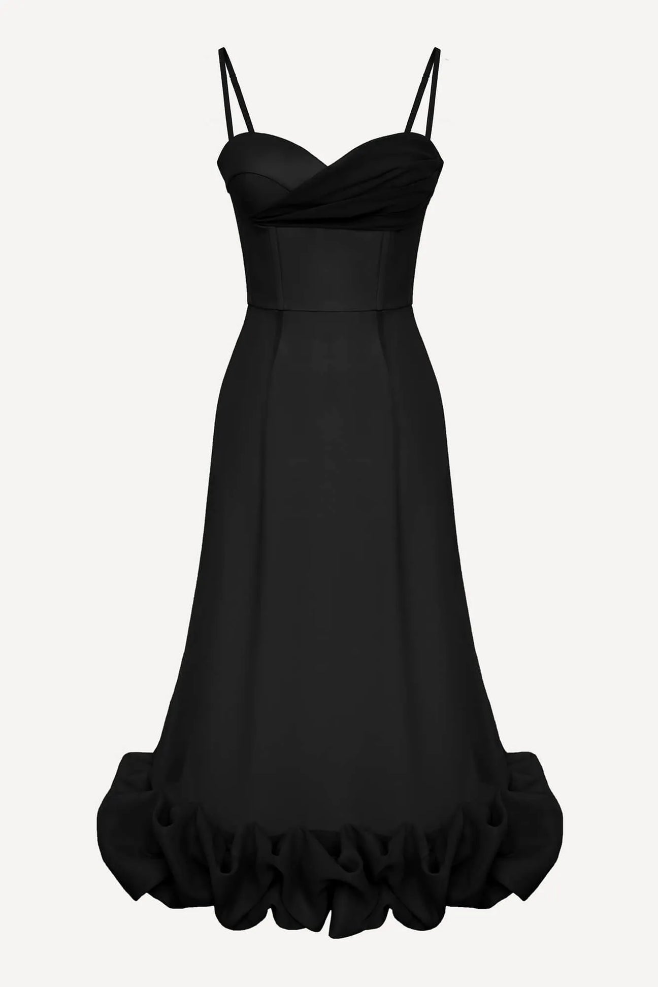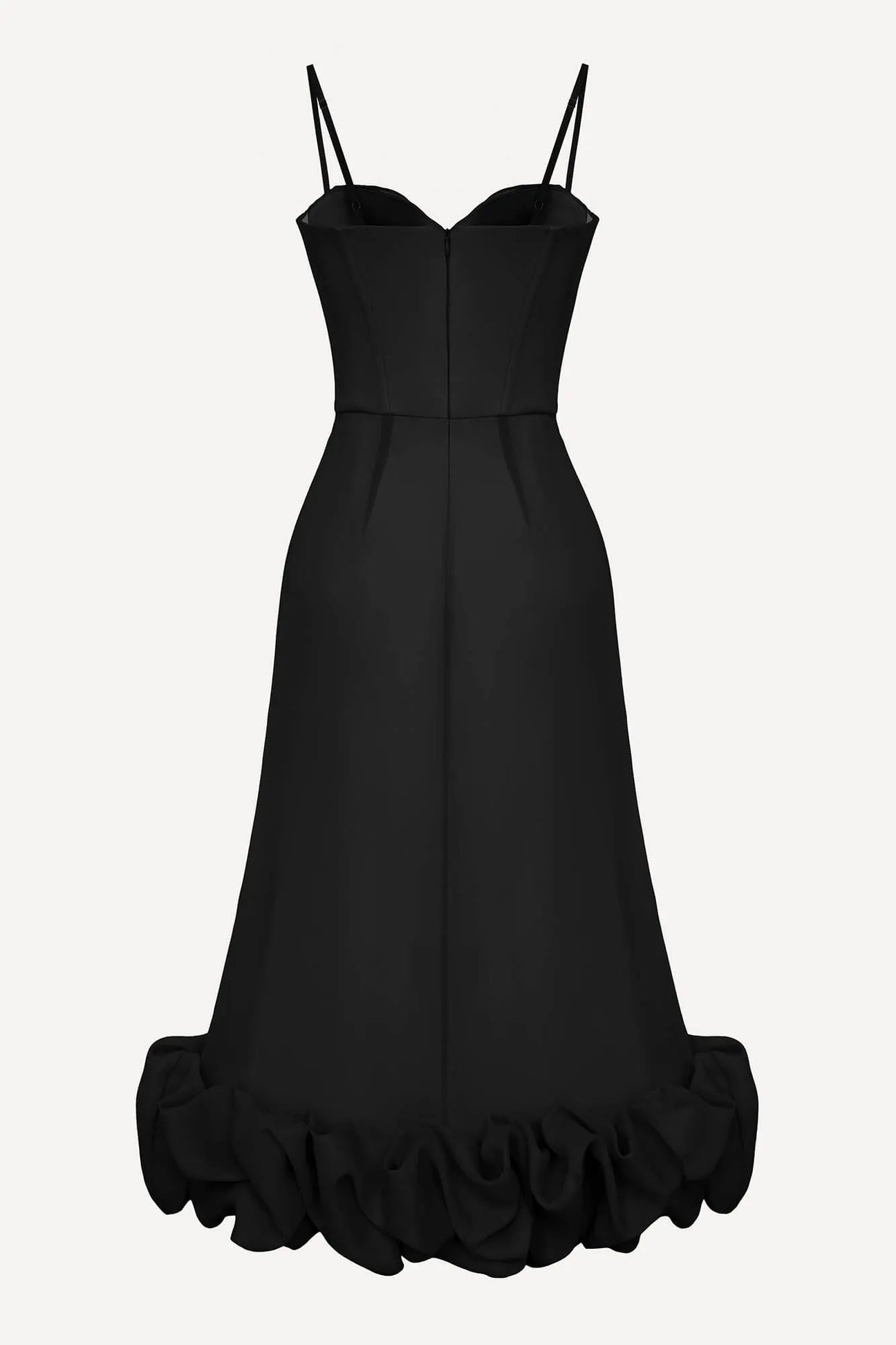 She’s elegance with an edge. The Priscilla Dress is for the woman who enters quietly but leaves an unforgettable impression. With its curve-hugging silhouette, clean neckline, and dramatic gathered hem, it’s made for elevated nights and luxurious escapes.