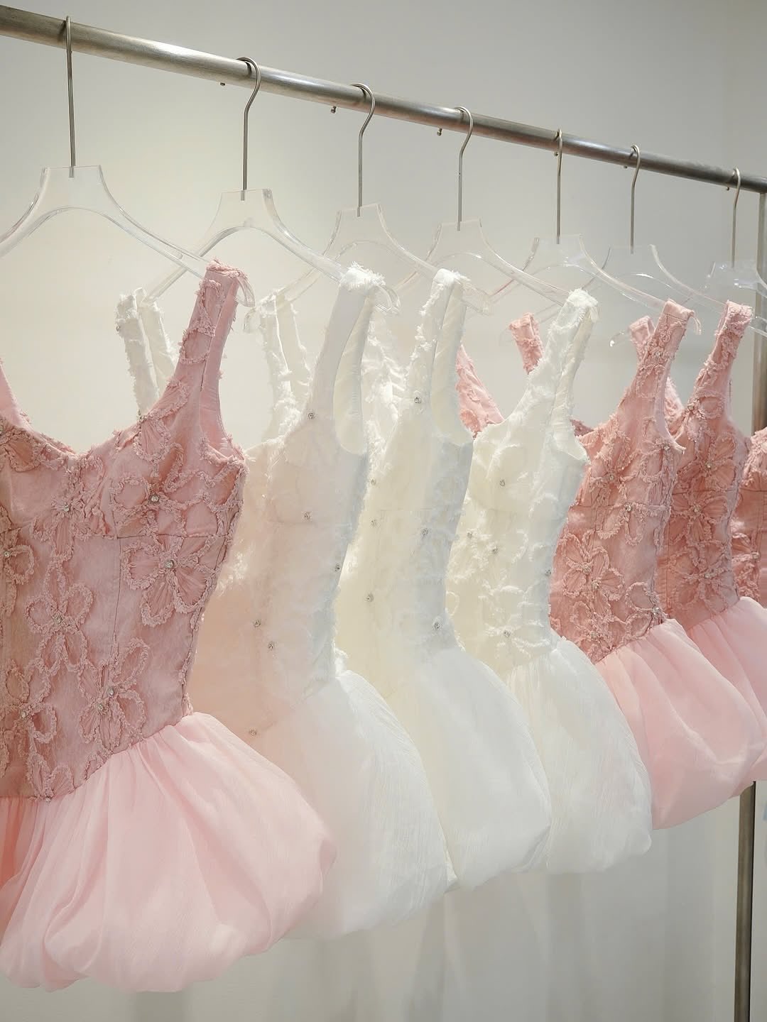 The Riley Dress is framed with hand-crafted floral appliqués along the neckline — paired with a sleek, sculpted silhouette that celebrates timeless femininity with a touch of modern allure.