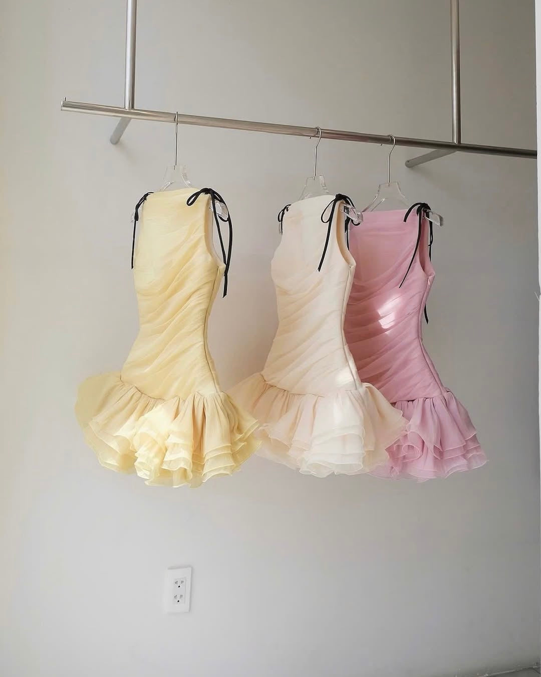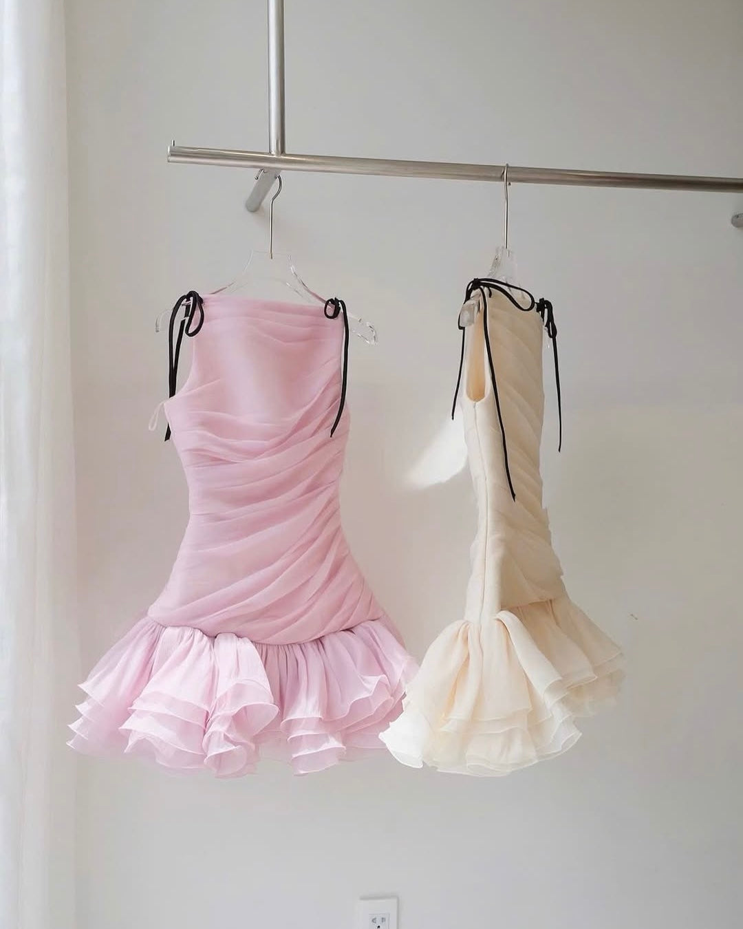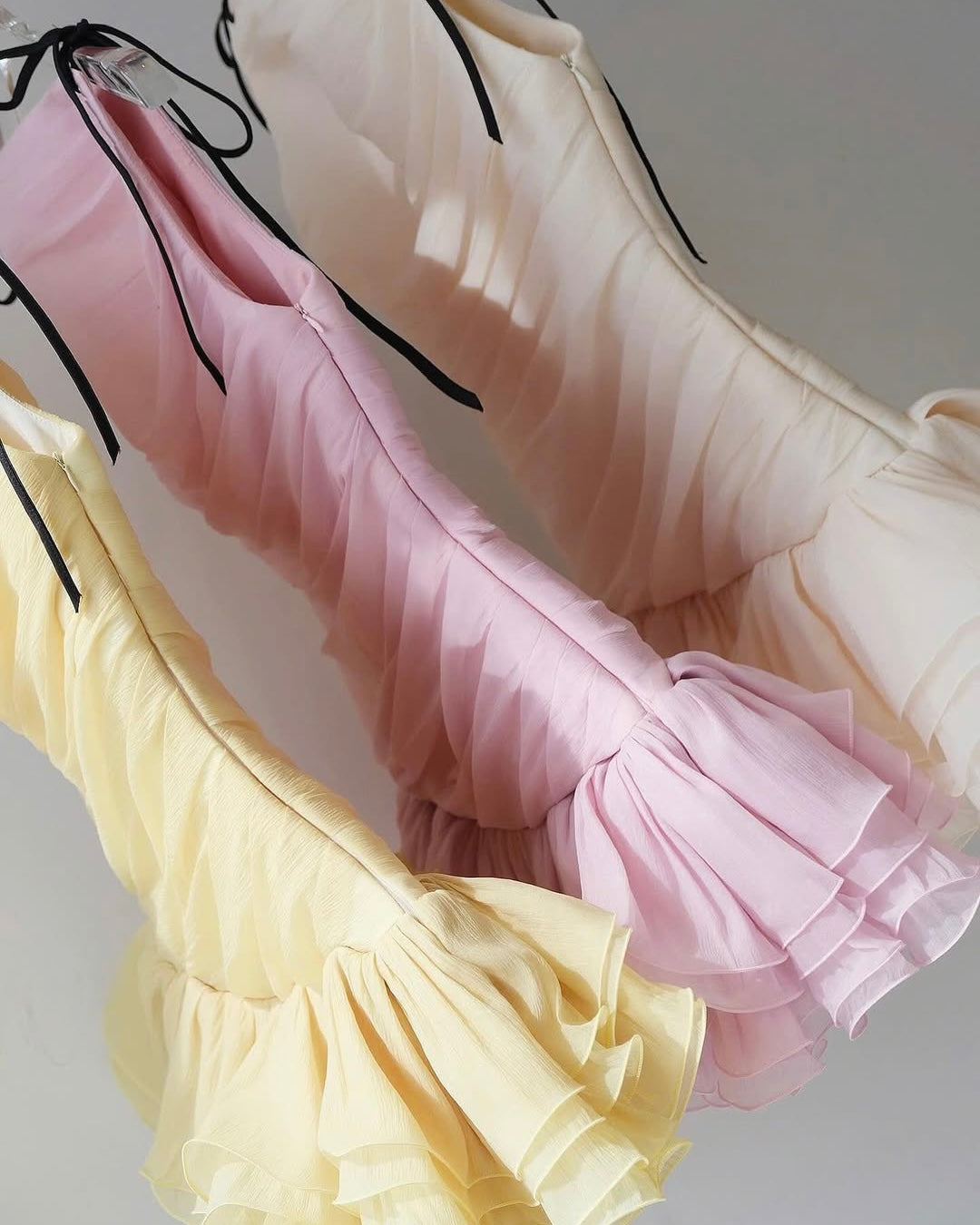 The Sanya Dress is your playful statement piece: soft ruching, delicate ruffles, and a silhouette that hugs in all the right places. She’s made for golden hour selfies and flirty little twirls.