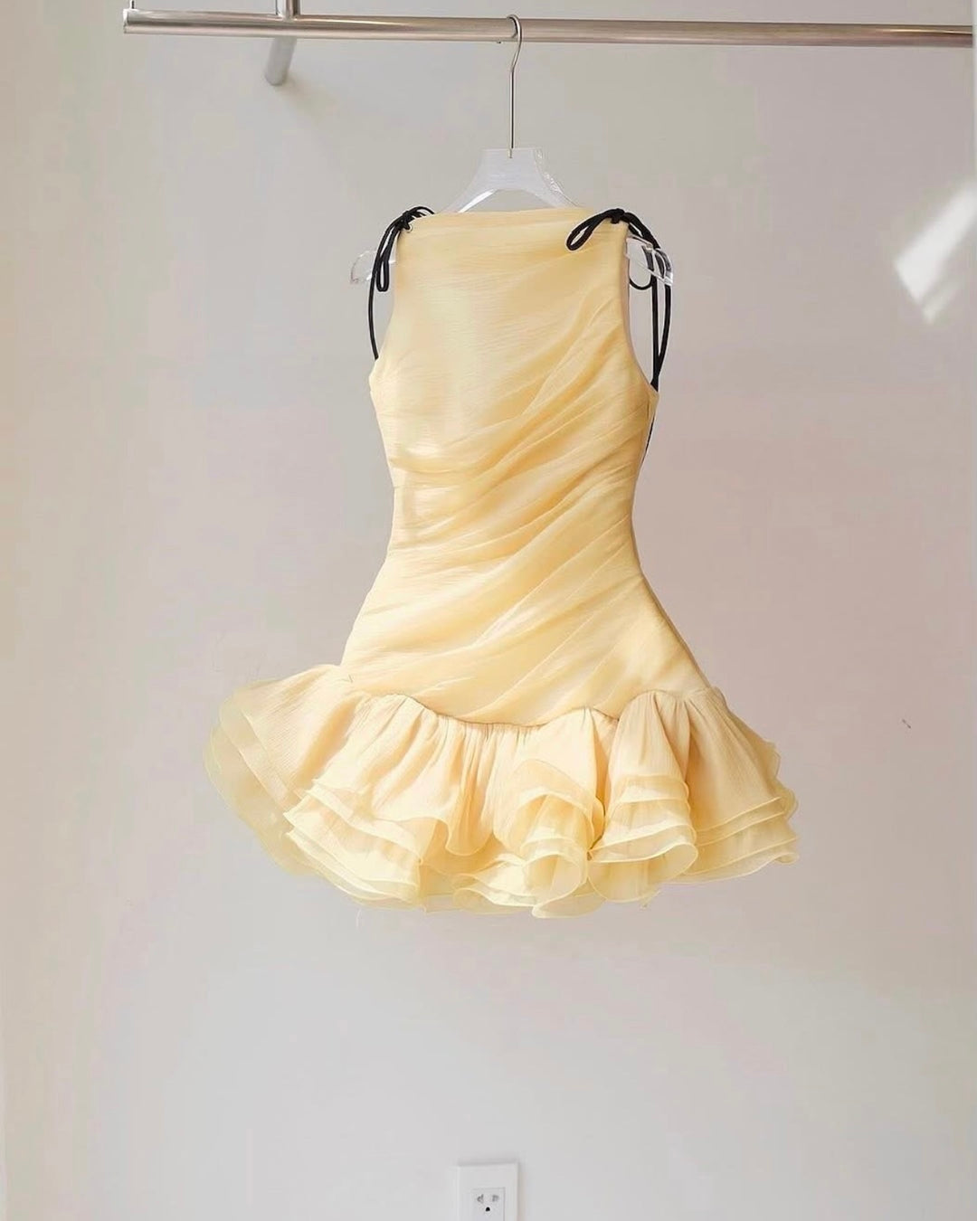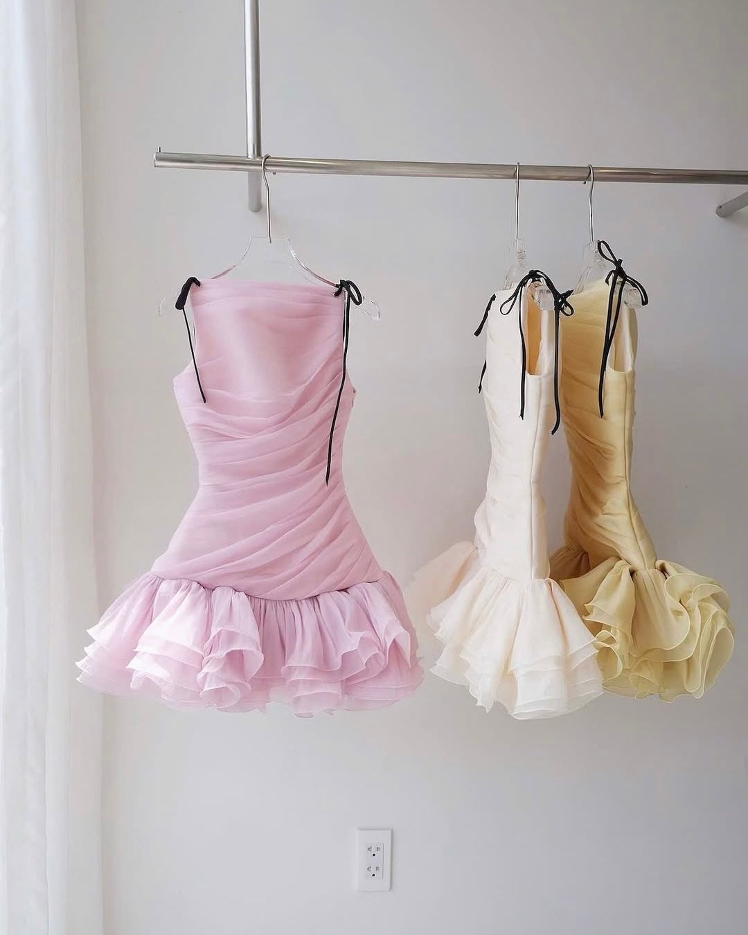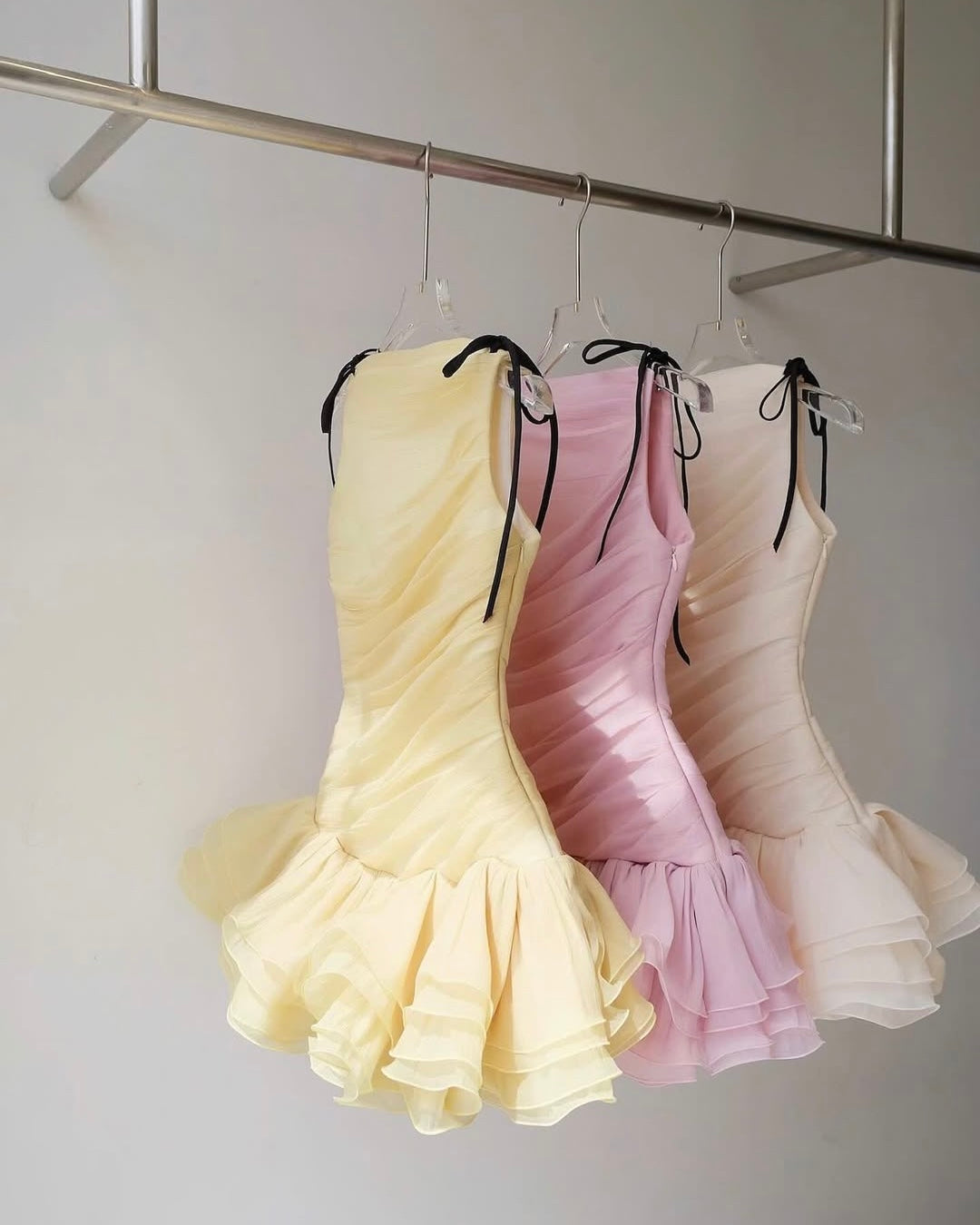 The Sanya Dress is your playful statement piece: soft ruching, delicate ruffles, and a silhouette that hugs in all the right places. She’s made for golden hour selfies and flirty little twirls.