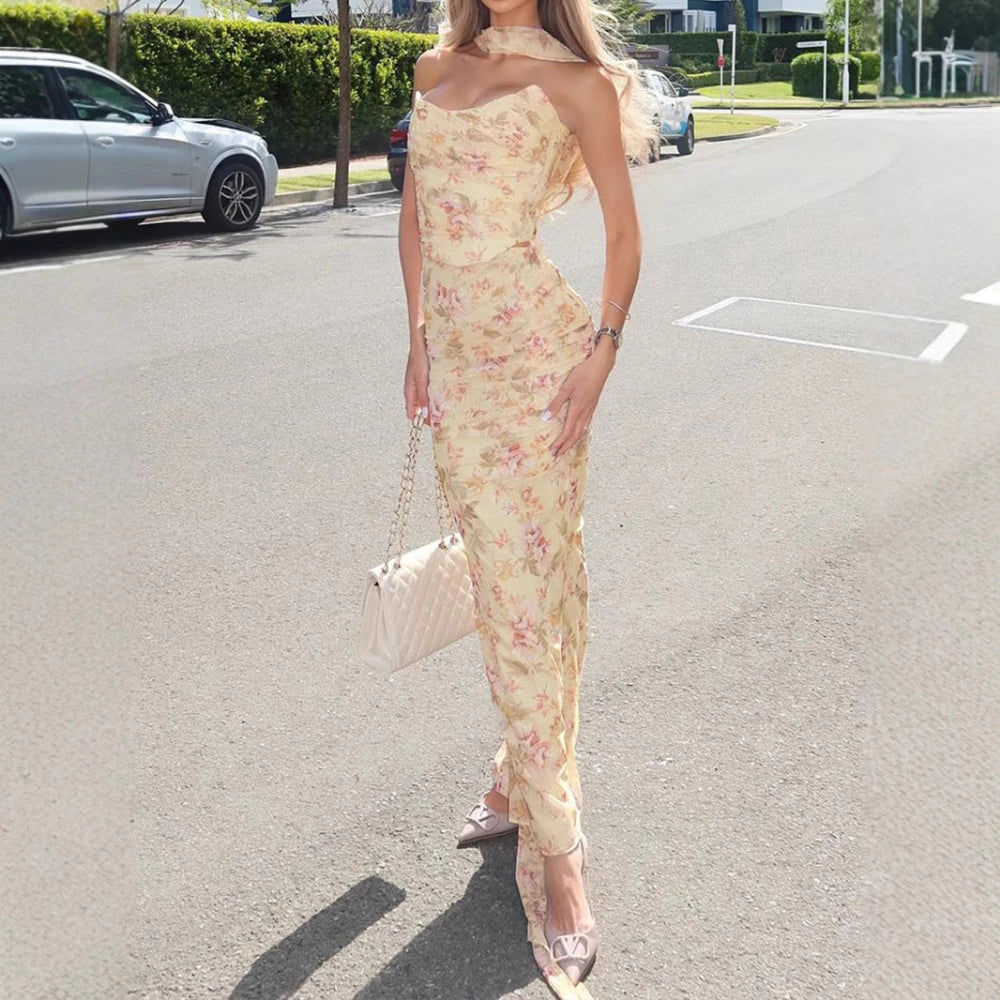 A dress that moves with you—literally. The Yvonne Dress features delicate ruffle trims, a figure-flattering ruched bodice, and a graceful slit that adds just the right amount of drama.