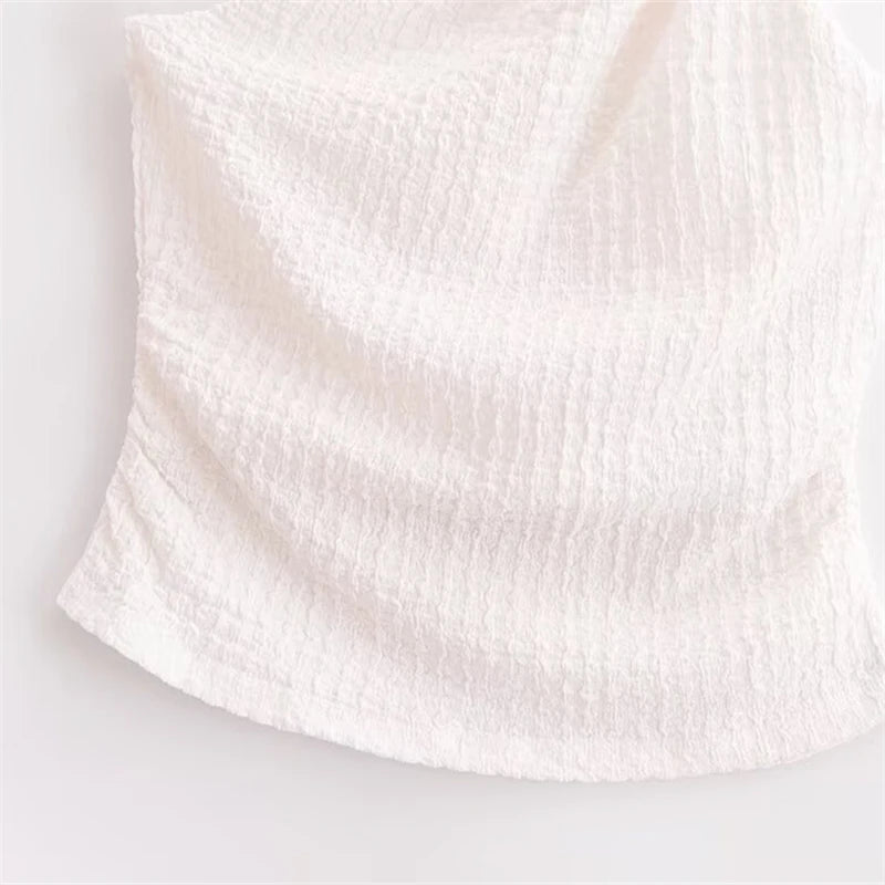 Elevate your style with Zia Top. A luxe take using structured satin for evening appeal, with a molded bustier silhouette hidden beneath the drape.